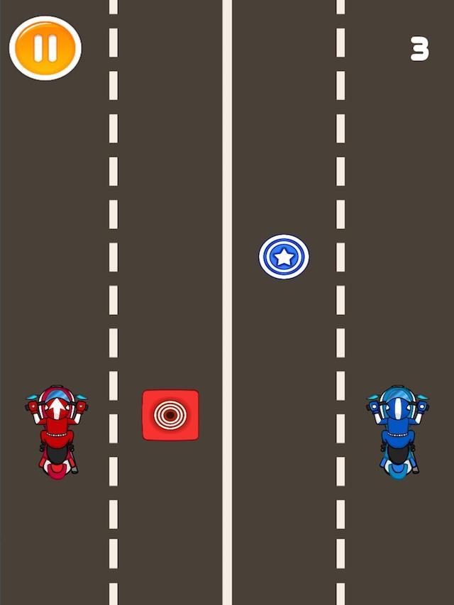 同时控制红色自行车和蓝色自行车。收集所有圆圈,避免道路上的正方形。